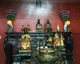 上面介紹之方位均以信士面對神像站立的位置為準。以上所介紹的擺設均屬於神器,其餘之拜墊、桌椅等用品,則是人用的器物。